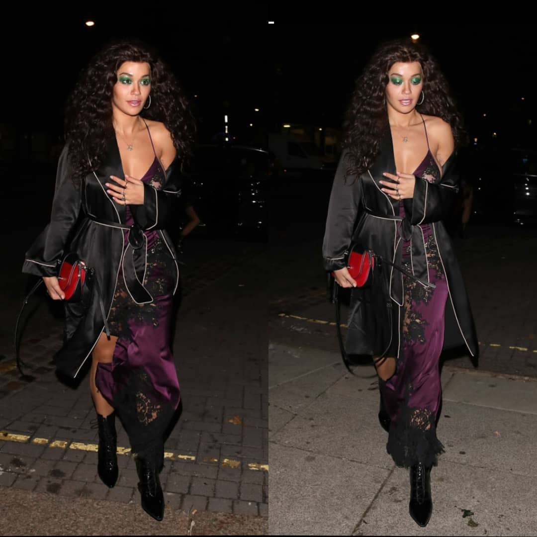 Donning a slinky black and purple semi-sheer dress, 27-year-old Rita Ora appeared to be channeling Cher's character Alexandra from the 1987 film 'The Witches Of Eastwick' at her party in London. (Instagram)