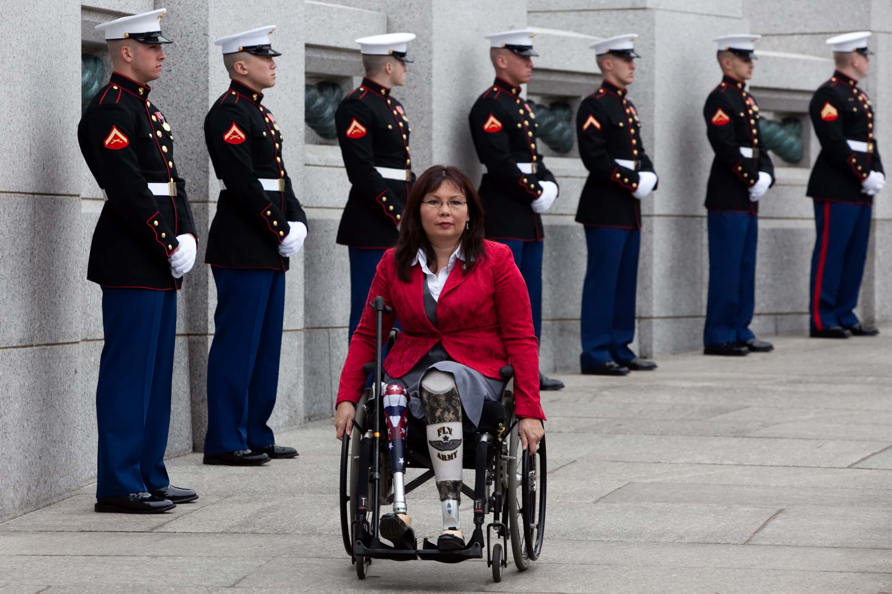Following in her father's footsteps, she enrolled in the United States Army Reserve Corps and was became a commissioned officer in 1992. She was deployed to Iraq in 2004 and was awarded a Purple Heart after losing her right leg near the hip and her left leg below the knee. She retired from military service in 2014 as a lieutenant colonel. She successfully ran for a seat in the House of Representatives in 2012, before being elected to the Senate in 2016.