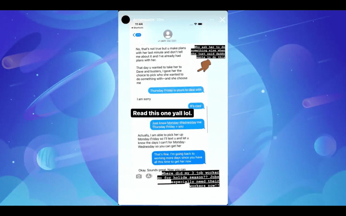 Devoin and Briana were having a fight over text messages when Devoin apparently decided to make her number viral. Devoin asked why Briana was seemingly only letting him spend time with Nova if it’s to drive her somewhere or when Briana “needs” him.