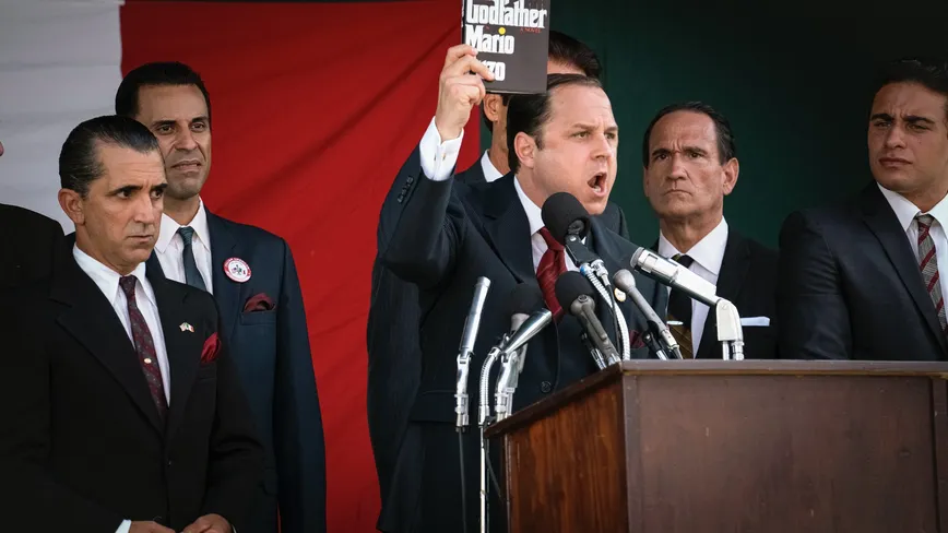 In ‘The Offer’, Joseph Colombo, played by Giovanni Ribisi, lingers as a threatening presence from the start of the episode. As soon as he learns about the development of ‘The Godfather’ as a movie, he stages a rally across New York where he asserts that the movie was a conspiracy against hardworking Italian people. He calls ‘The Godfather’ a book of lies and labels the author Mario Puzo as a ‘traitor’. On Joseph’s instructions, Ruddy’s car is fired with warning shots. Robert Evans finds a dead rat in his bed and this horrifies him.