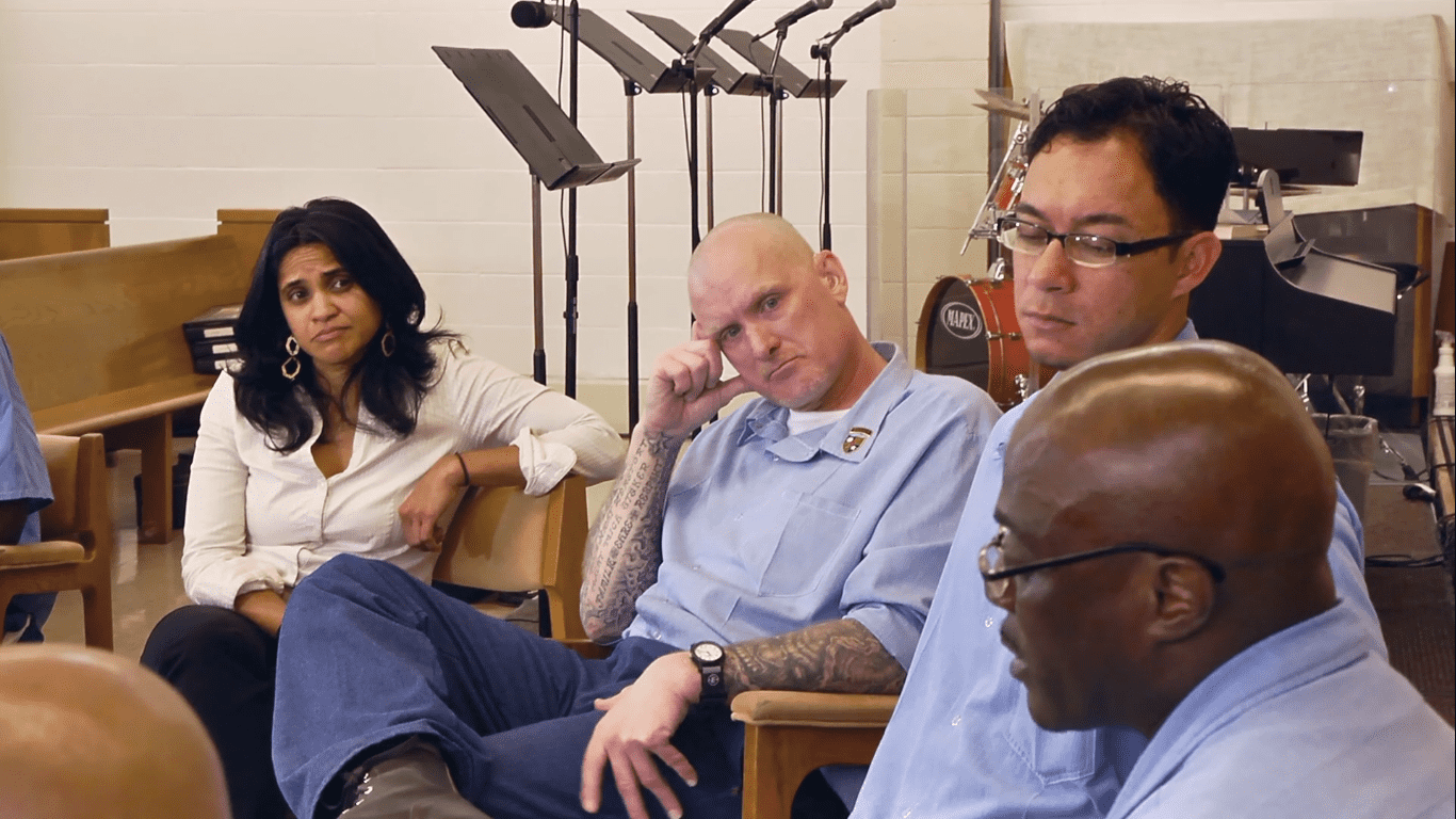 In a wonderful, rare and candid moment, the prisoners divulge their raw feelings, in particular, about the trauma they have caused and survived. Every man sitting in the VOEG circle, baring themselves and their stories, is convicted of murder. The film pans in on each of these individual going through significant and profound changes as they come to terms with their crimes and past, and confront their inner demons. The VOEG program is designed to get to the root causes of one's crimes and process its effects on themselves, the survivors, and the community. Sonya Shah, the founder and director of The Ahimsa Collective, and the host of a majority of the VOEG sessions says the program is driven by the philosophy that 'hurt people hurt people'.