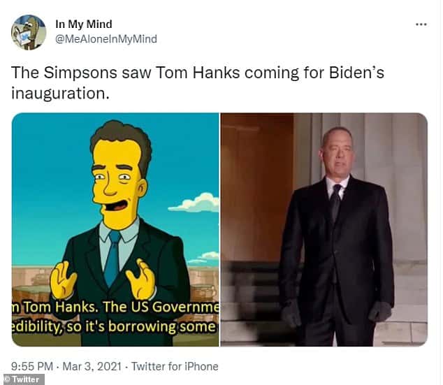 Coming yet back to the inauguration this year, the event was scheduled at quite a tense time when the Capitol riots were being talked about. Needless to mention, the inaugural was also held even as the Covid pandemic raged on. The inauguration special was therefore a low-key program but featured Hollywood actor Tom Hanks. Coincidentally, in the 2007 Simpsons movie, Tom appeared to make a cameo appearance.