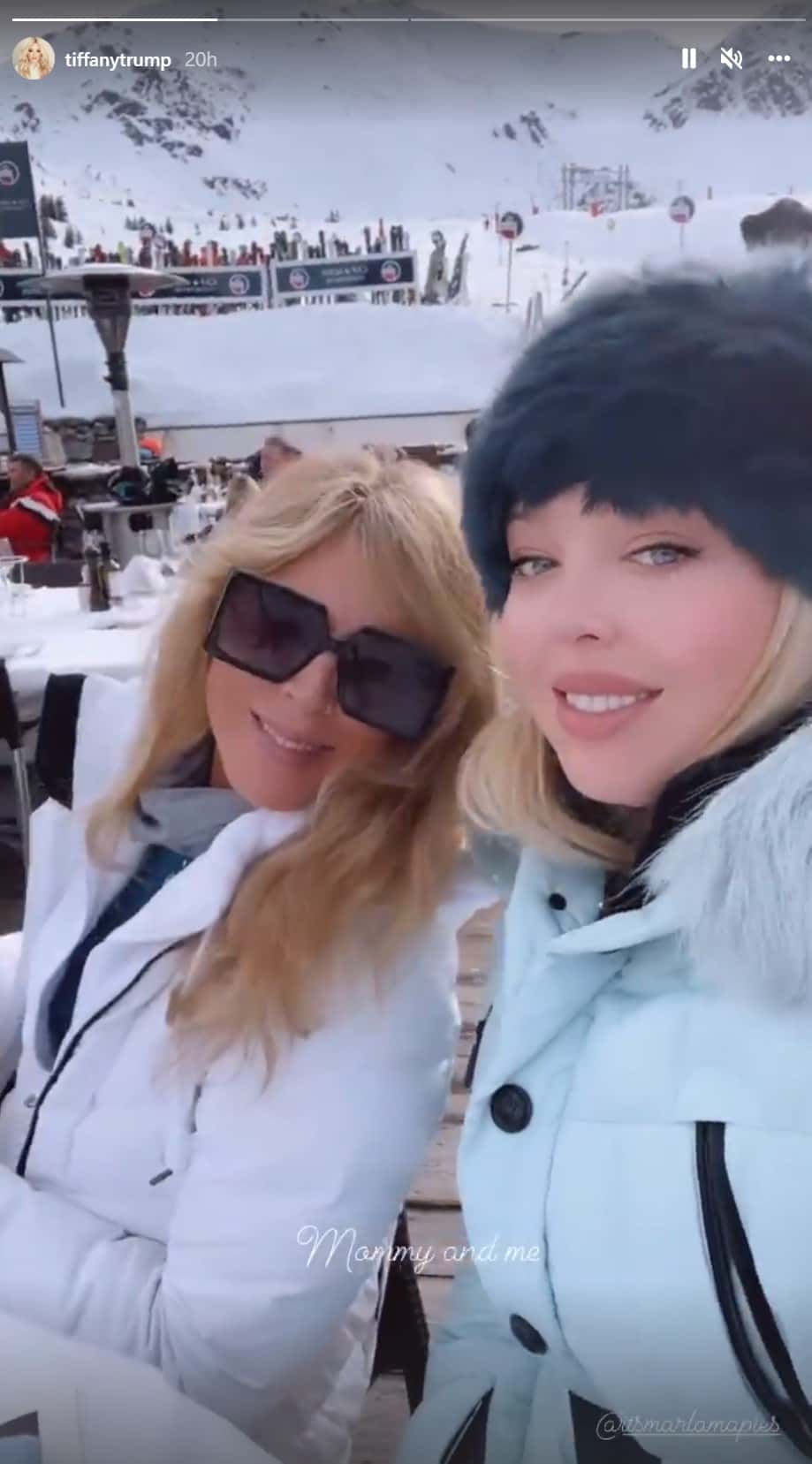 The 28-year old Georgetown graduate was seen rocking a baby blue colored puffer jacket with a furry hood. Trying to brave the chilly weather, she covered her blonde locks with a deep navy-colored fur cap. Her mother Marla Maples, 58, was seen dressed in a white ski jacket and oversized rectangular black sunglasses. Maples leaned in and gave a happy smile.