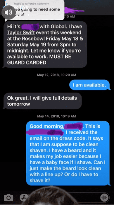 But, Public Villian ended up posting a screenshot of a text message from what is being reported to be a Global Security Group representative asking him if he could work the event which was from May 18 to May 19, 2018. The TikTok is seen replying asking about the grooming specifications. He captioned his screenshot, "Here’s your proof. I found my text messages from my employer. You are welcome." Furthermore, he also posted another video that showed his security guard license, to prove his job line; it was issued by the Bureau of Security and Investigative Services.