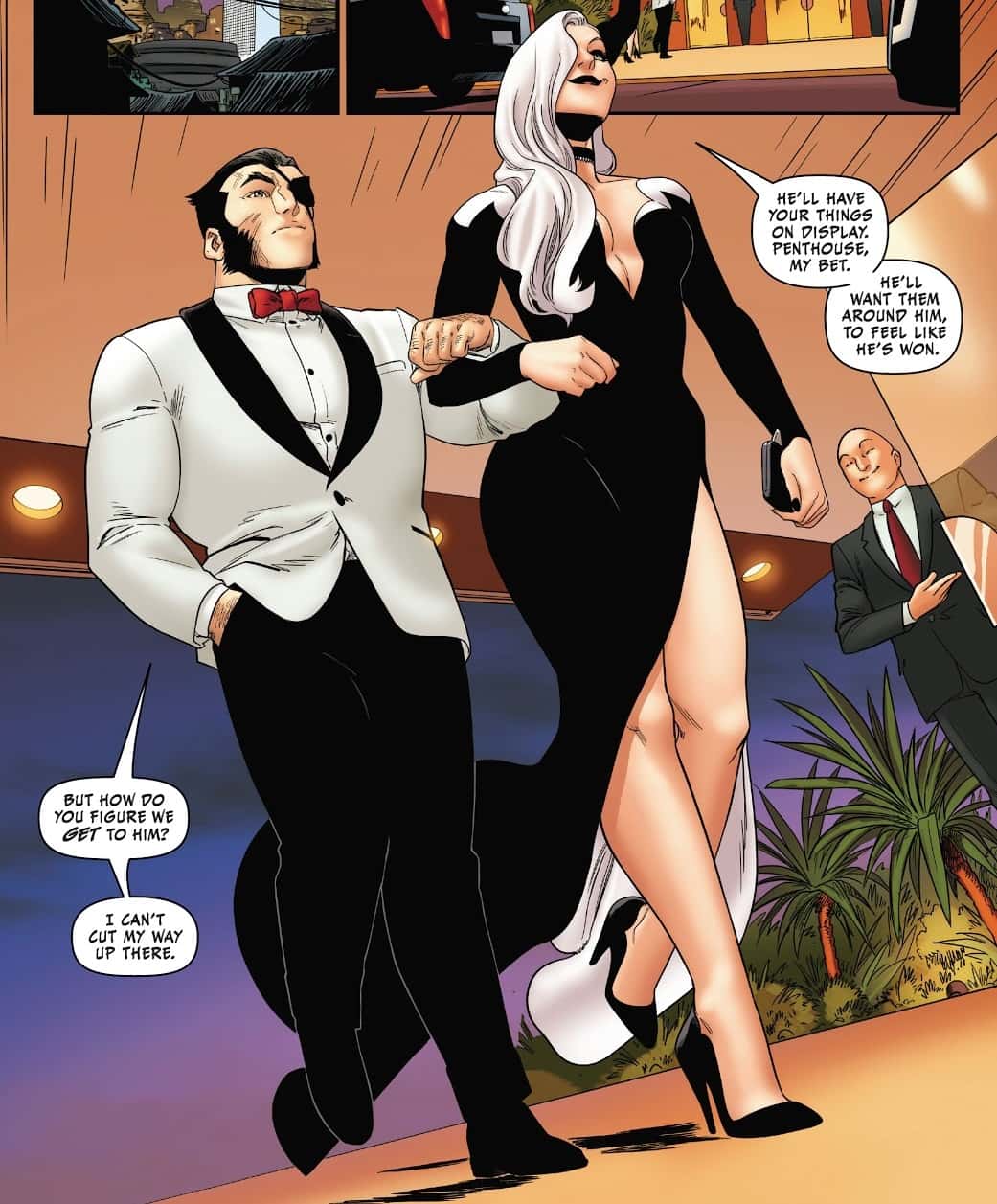 Once you get past the J Scott Campbell covers, 'Black Cat' has actually had some of the best and most stylish art in comics right now, and this month's issue is no different. After tracking down a painting owned by "Patch" (a very, very badly disguised Wolverine), only to find it's been stolen by someone else, Black Cat enlists Wolverine's aid in hitting the casino where the painting is most likely to be. Artist Kris Anka has her and Wolverine dressed to the nines, designing an outfit that's reminiscent of Angeline Jolie's famous Golden Globes look from 2014, but one with just enough highlights to mark Black Cat's trademark style.