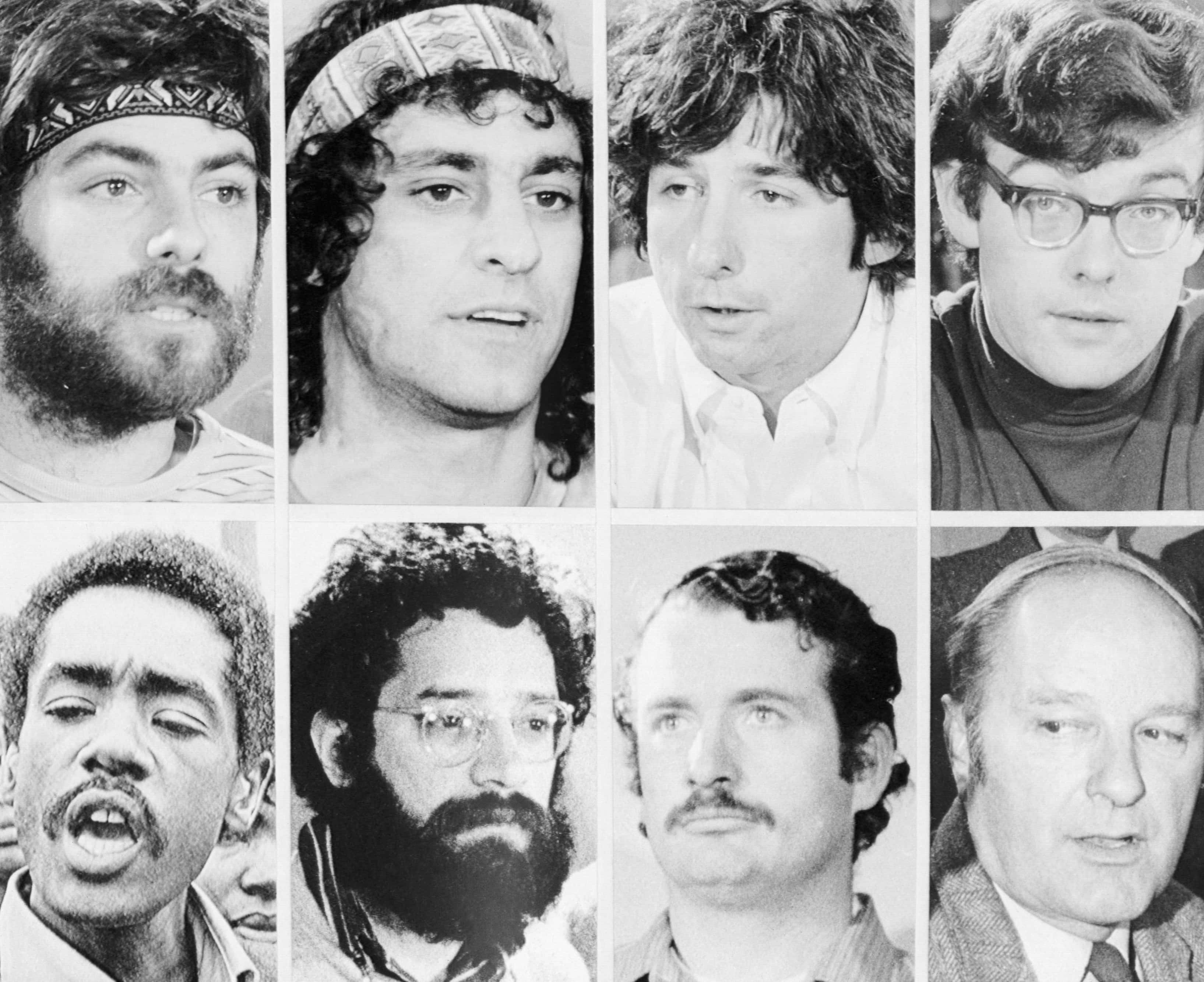 Eight activists — Tom Hayden and Rennie Davis of the Students for a Democratic Society, counter-culture Yippies Abbie Hoffman and Jerry Rubin, MOBE organizers David Dellinger, John Froines and Lee Weiner, and Black Panther Party Chairman Bobby Seale — are brought on trial at first. What began as the Chicago Eight Trial soon became the Chicago Seven when Seale was at first bound and gagged in the courtroom after disrupting the trial and then his case was declared a mistrial.
