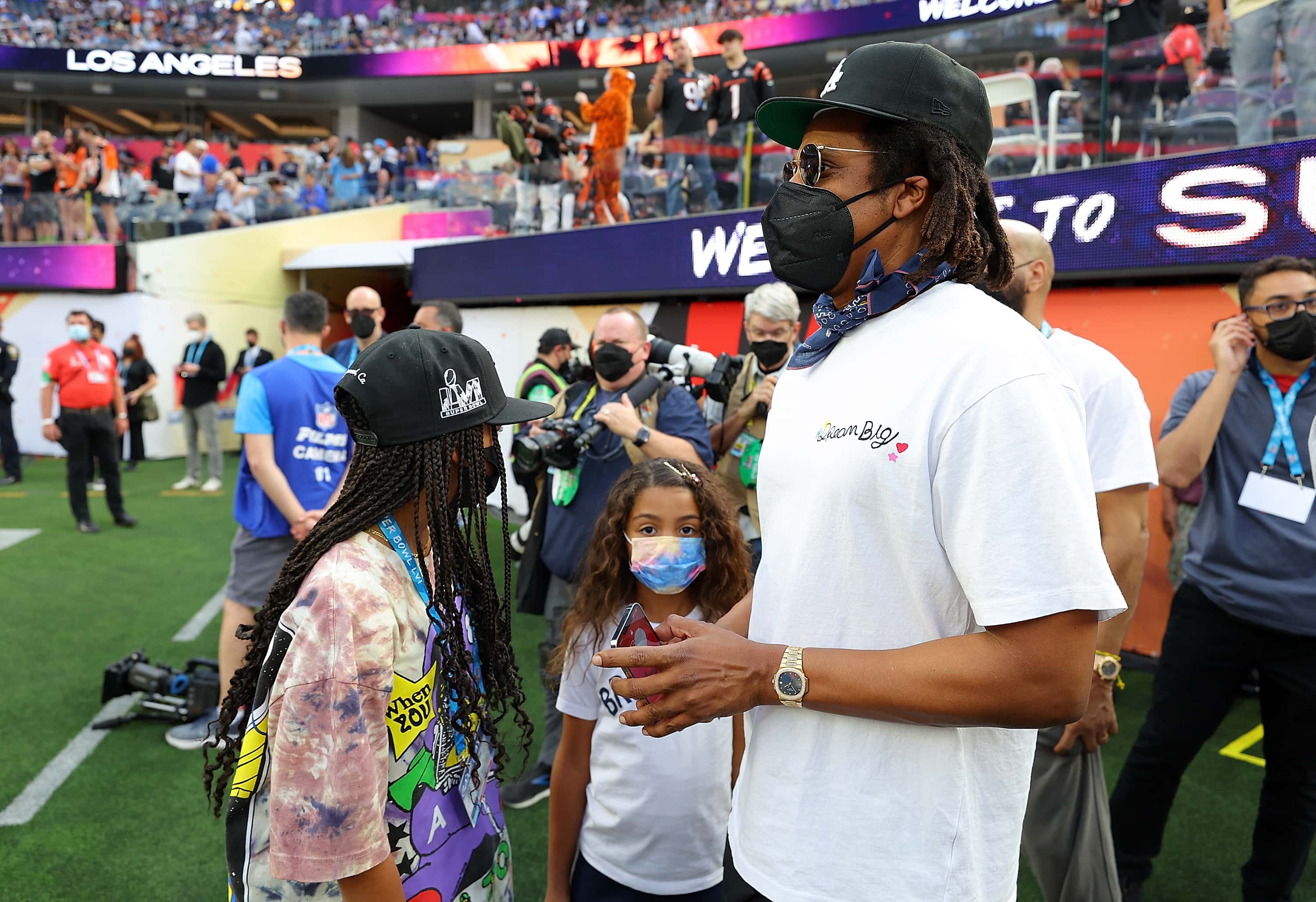 Jay-Z was also spotted at the arena with daughter Blue Ivy Carter before Super Bowl LVI match, however, both them were sporting masks. However, he took it off during the match.