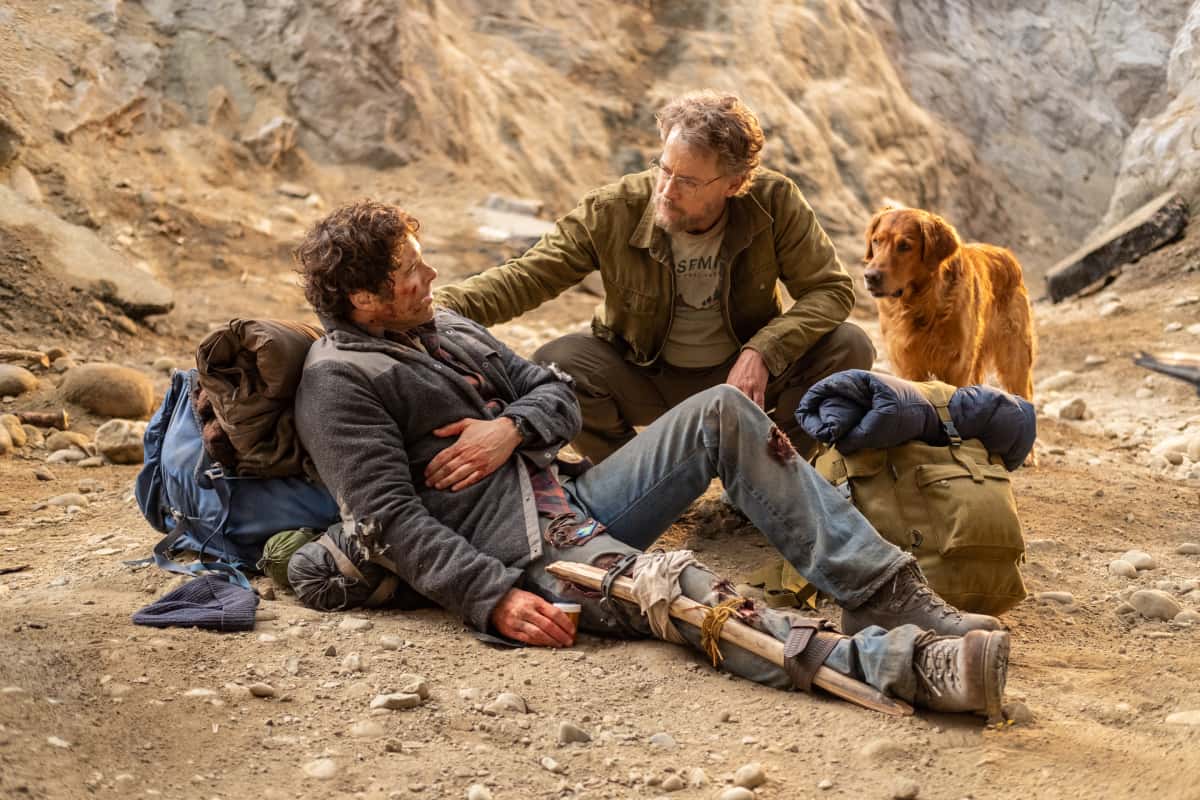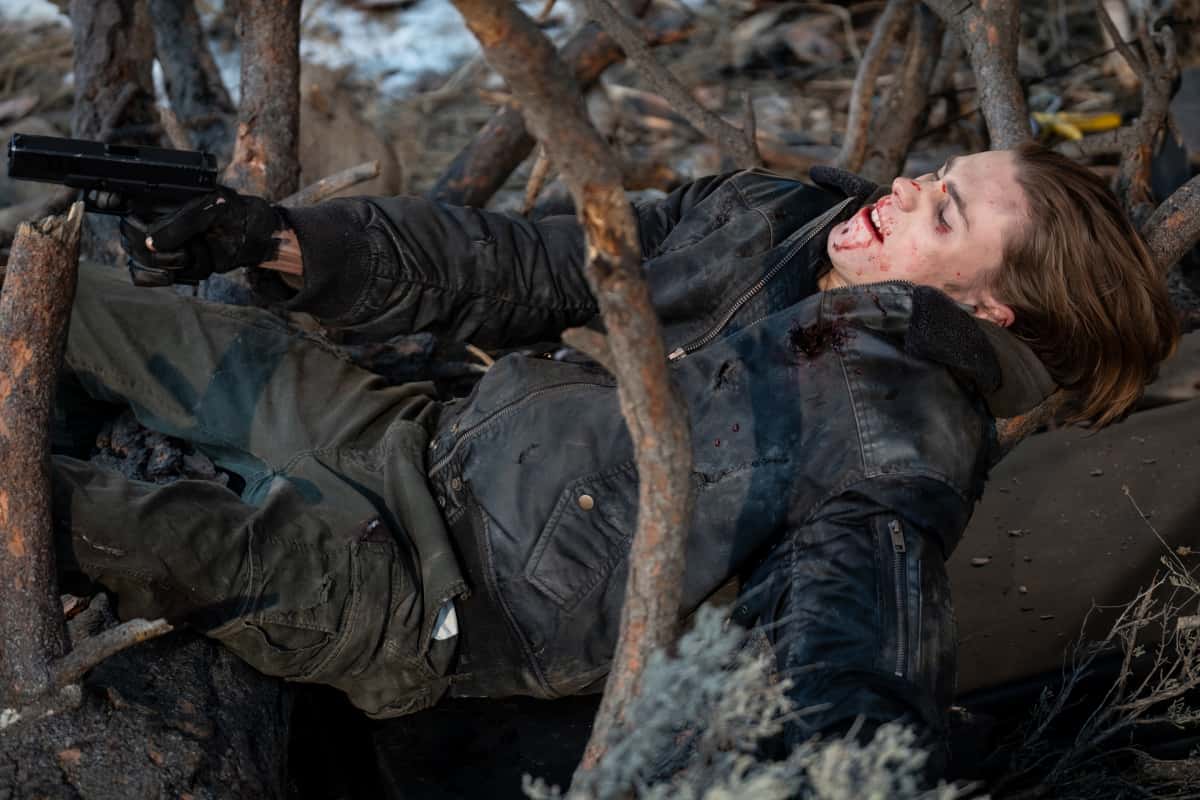 Meanwhile, the Boulder four run into trouble. While trying to cross a deep crevasse, Stu falls and breaks his leg — we can see a bone sticking through the skin. Stu then convinces them to leave him behind. Glen gives him some pain pills. But soon, the other three meet in the middle of the desert Lloyd Henreid (Nat Wolff) in a stretch limo. He takes them to Vegas.