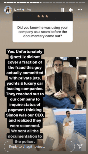 The daughter of Lev Leviev and an heiress Leviev Diamonds Chagit Leviev shared on her social media that Shimon is a “fraud who stole our family’s identity and has tried to exploit our good name to con victims out of millions of dollars.” She further wrote, “He has no relation to the Leviev family and has no affiliation with our company LLD Diamonds. I am relieved that his real identity and actions have been globally exposed, and hopefully this will bring an end to his unscrupulous actions. The lawsuit we filed today is just the first step out of many we will be taking to have him face justice and get the sentence he deserves.”