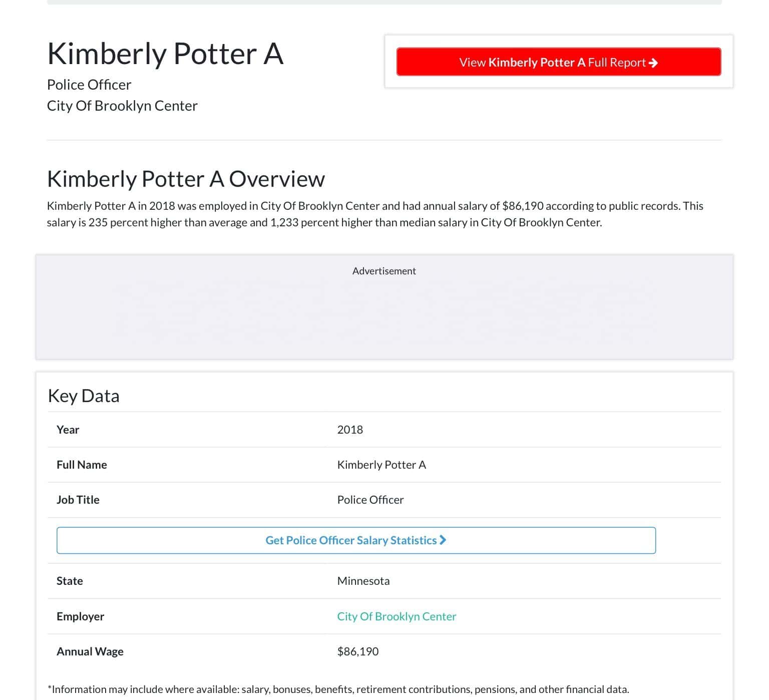 "Kim" Potter has been with the Brooklyn Centre PD for over 25 years. Her LinkedIn profile says that she joined the force in February 1995. In a brief statement, the BCA said, "Officer Kim Potter has been with the Brooklyn Center Police Department for 26 years. She is on standard administrative leave. Further personnel data are not public from the BCA under Minnesota law during an active investigation."