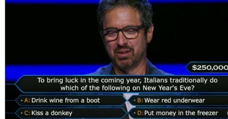 Romano gave the right answer by choosing the second option Detroit Pistons and moved on to the $250,000 question. It was here that the comedian faced a slight hiccup when asked about an Italian tradition. The question read, “To bring luck in the coming year, Italians traditionally do which of the following on New Year’s Eve?” The options were “Drink wine from a boot”, “Wear red underwear”, “Kiss a donkey” and “Put money in the freezer.”Although he tried recollecting his experience with the Italian tradition, drawing examples from his personal life, he found it difficult to finalize his answer. Romano then opted for the “Call A Friend” option. However, he was a little unsure about the final answer and decides to flip a coin as he finds himself going to and forth with two options.