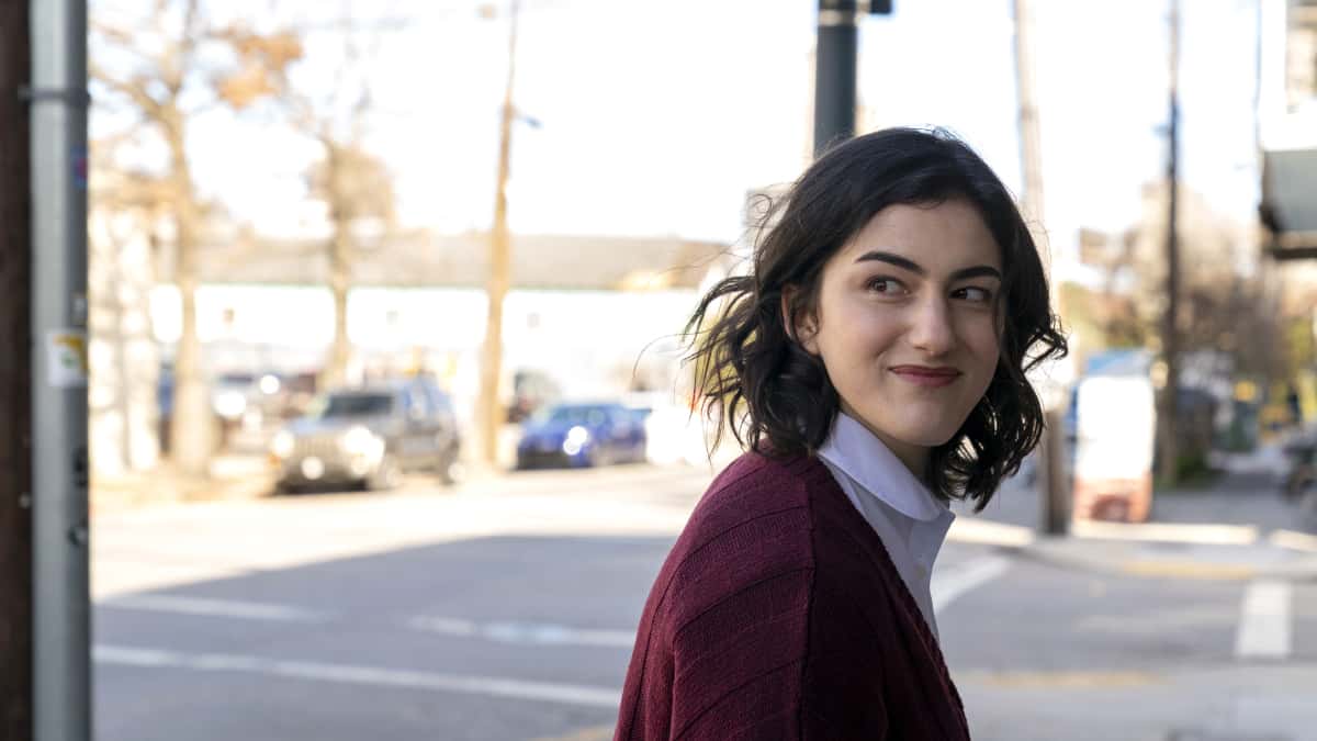 Changing the topic, she asks, “Is NYU your first choice?” In a mock rehearsal for the interview, she plays Professor Big Brain and asks him questions. After hearing him, she jokes, “We love nerds without social skills.” Then she asks, “Other than the death of your mother, tell me about an experience that had a huge impact on you,” Flirting with her, Adam teases, “I met a really cool girl. She's good at fishing.”