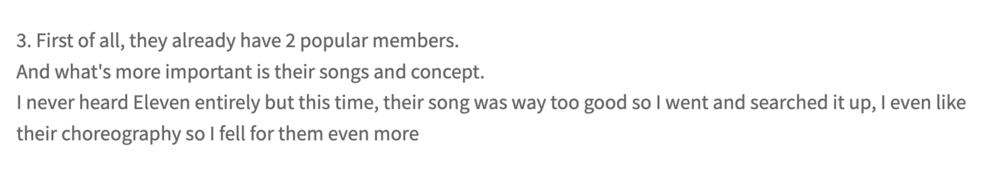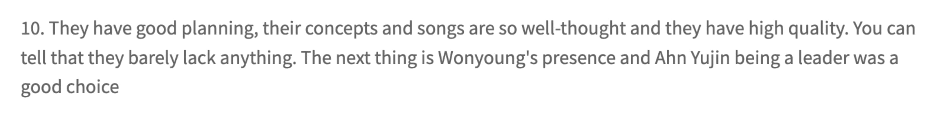 Second is because their debut songs is soooooo damn good! It’s been viral in tiktok like everyone dance to liz part in beginning & also wonyoung part. But i think all members part has their own charms which one of the reasons Eleven hit on top kchart